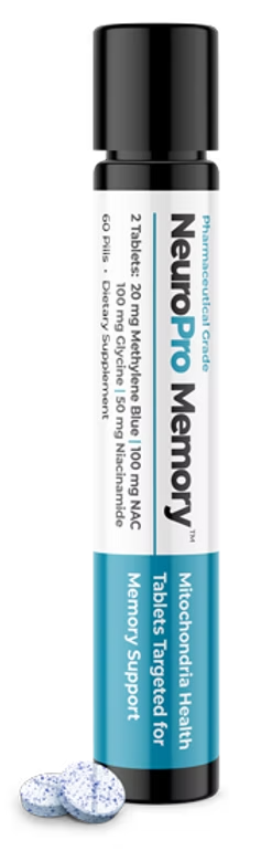 Mitochondria Health Tablets Targeted for Memory Support. NeuroPro Memory is a patent pending combination of Pharmaceutical Grade Methylene Blue, NAC, Glycine and Niacinamide. This combination of targeted nutrition supports mitochondrial health and natural memory support.